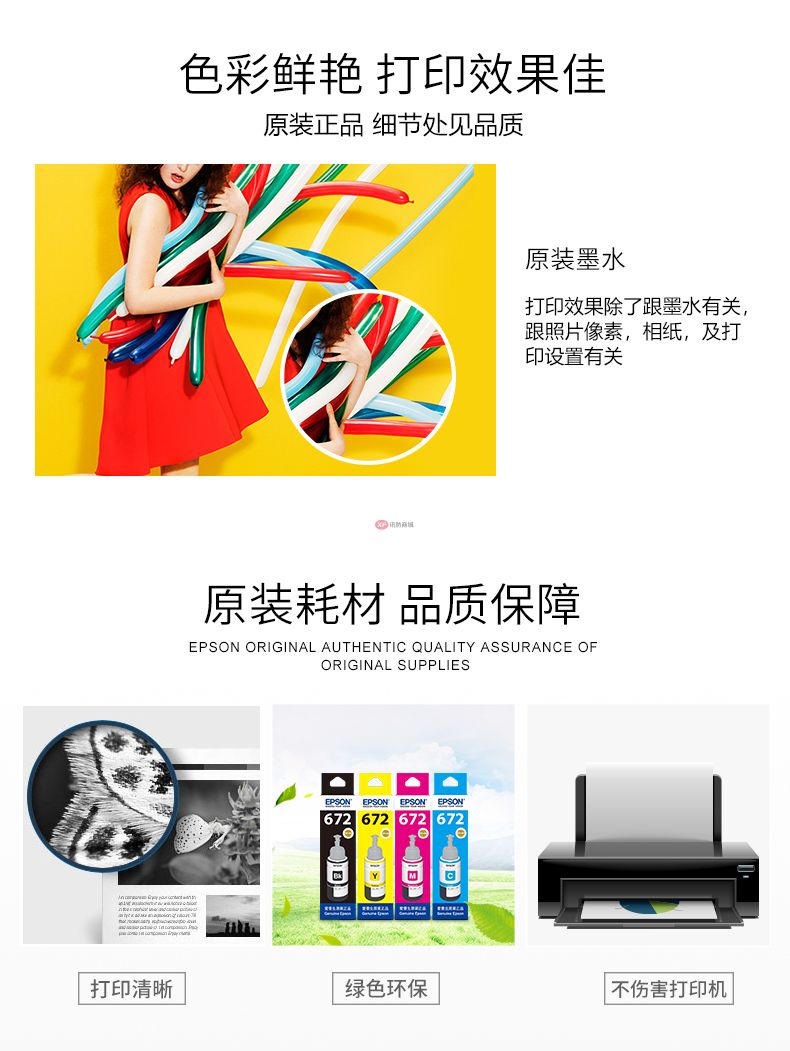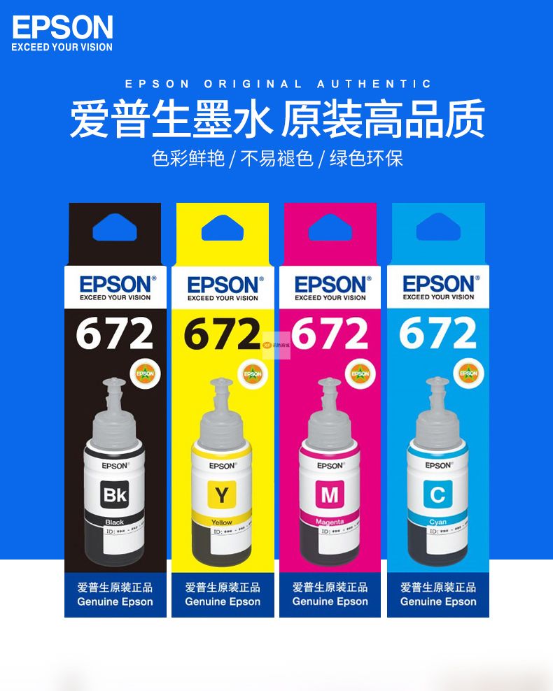 自營愛普生T6721原裝墨水L380 L385 L485 L551 L1300 L360 L220打印機 T672愛普生原裝黃色墨水