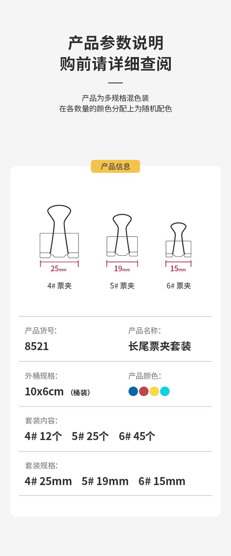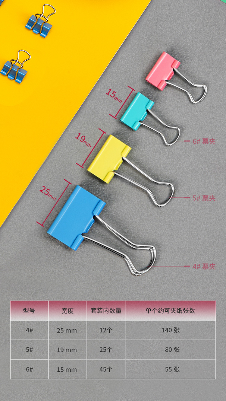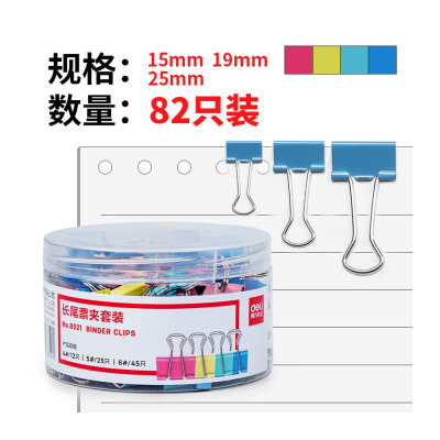 商品名稱:得力(deli)82只組合裝彩色長尾夾/燕尾夾/票夾(25mm*12只+19mm*25只+15mm*45只) 辦公用品 8521