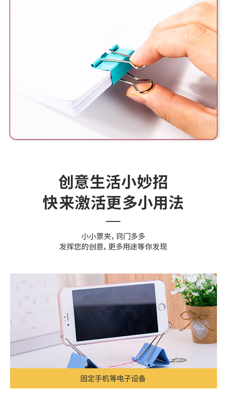 自營得力(deli)82只組合裝彩色長尾夾/燕尾夾/票夾(25mm*12只+19mm*25只+15mm*45只) 辦公用品 8521