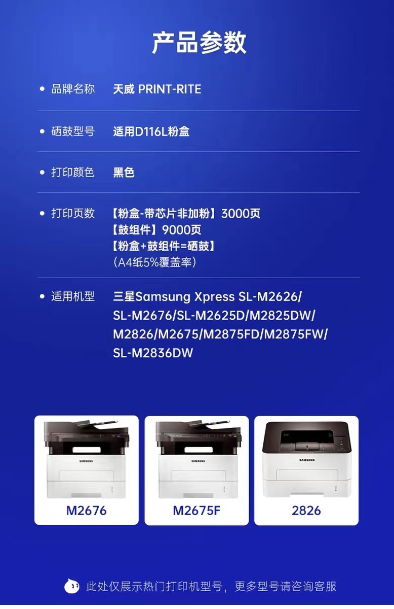商品名稱:天威 D116L高容量粉盒 適用三星SL-M2676