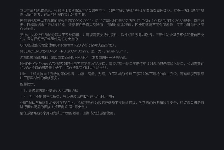 商品名稱:聯(lián)想(Lenovo)拯救者刃9000K 2022游戲電腦主機(jī)(12代酷睿i7-12700KF RTX3080 10GB LHR顯卡32G DDR5 側(cè)透 )