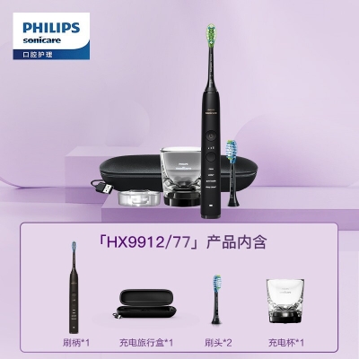 自營(yíng)飛利浦 X9912/77 電動(dòng)牙刷 成人聲波震動(dòng)10倍清除牙菌斑 含2支刷頭+充電玻璃杯 鉆石Pro黑色/粉色