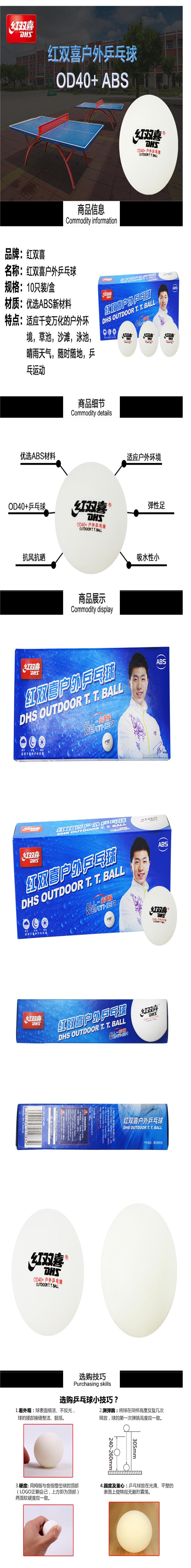 商品名稱:紅雙喜 OD40+ 乒乓球 一星賽頂 ABS新材料 白色(10只裝)