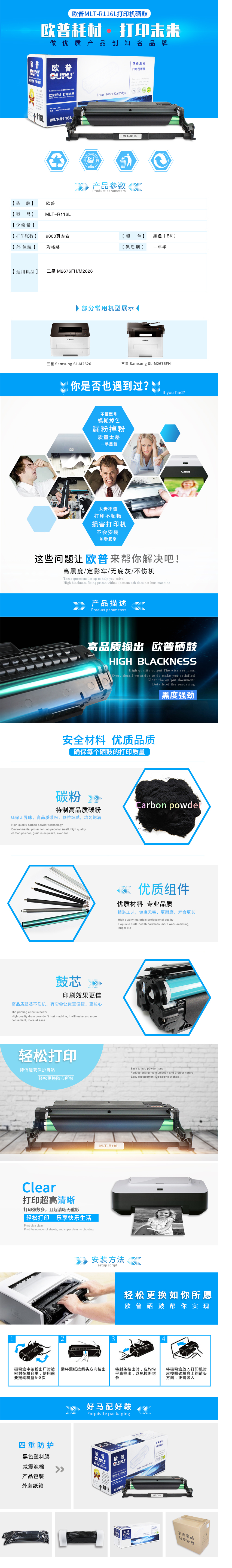 商品名稱:歐普(oupu) oupu-MLT-R116L 硒鼓適用三星 M2676FH/M2626