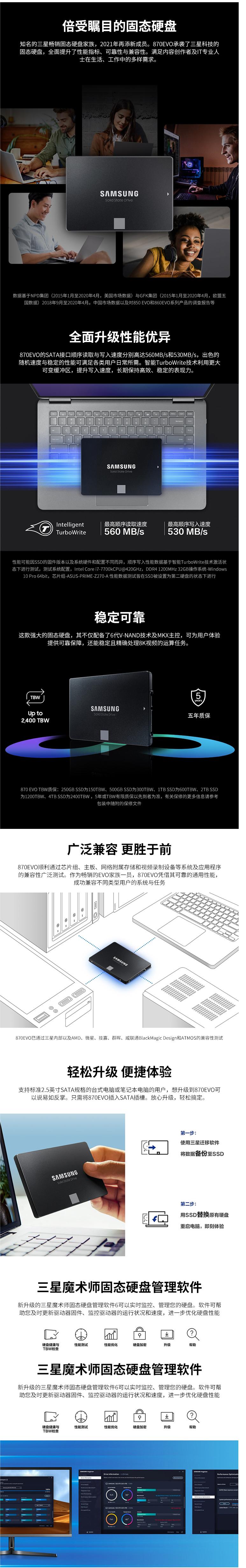 商品名稱(chēng):三星(SAMSUNG) 870 EVO(MZ-77E4T0B) 固態(tài)硬盤(pán) 4TB SATA3.0接口 讀取速度560MB/s