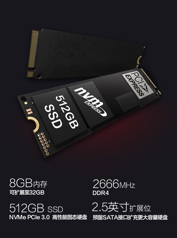 • 特性:全面屏,背光鍵盤,PCIE高速固態(tài)硬盤